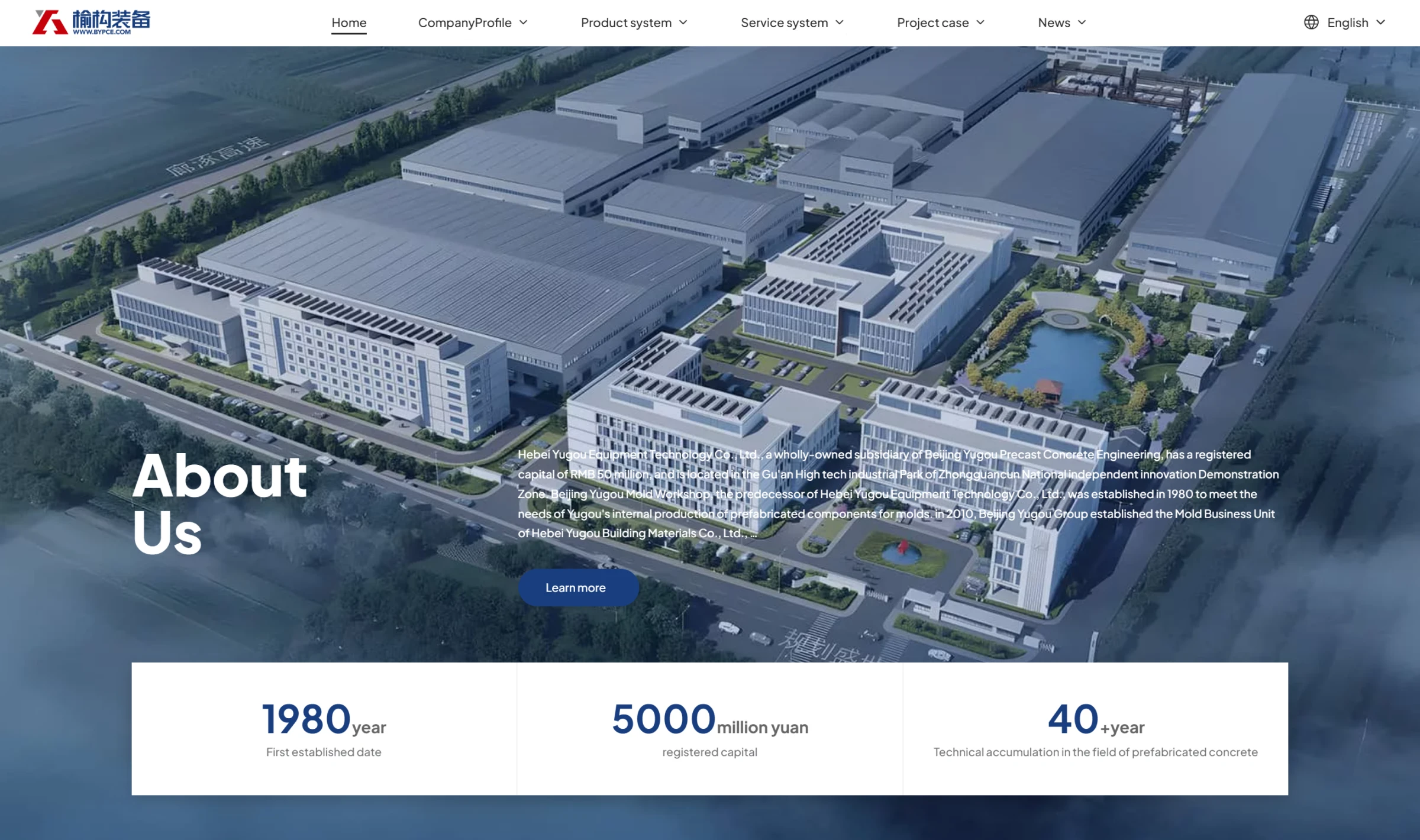 Hebei Yugou Equipment Technology Co., Ltd., a wholly-owned subsidiary of Beijing Yugou Precast Concrete Engineering, has a registered capital of RMB 50 million, and is located in the Gu'an High tech industrial Park of Zhongguancun National independent innovation